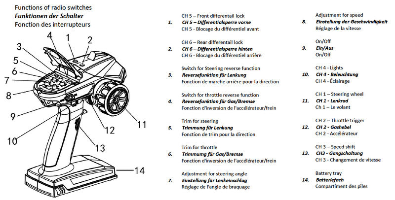 All these functions are combined in the 6-channel receiver. You want to use another 6-channel radio without loosing the lighting function? No problem!