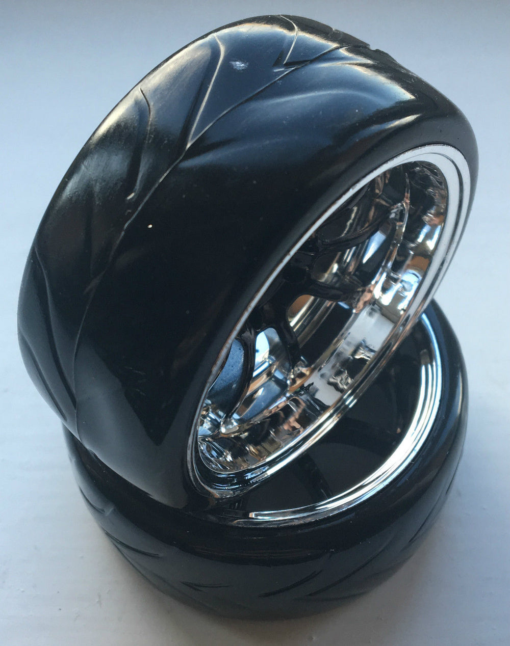 Absima 2510044 Black/Chrome 9 Spoke On Road Wheel & LP Plastic (Drift Style) Tyre Set