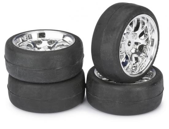 Absima 1:10 On Road Wheel Set - Slick Tyres - LP Comb Chrome Wheels (4 Set)