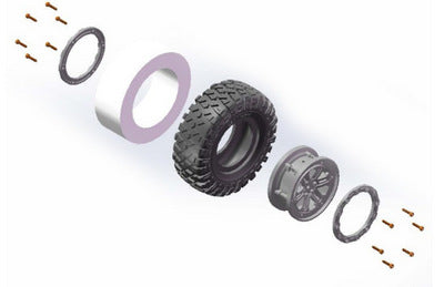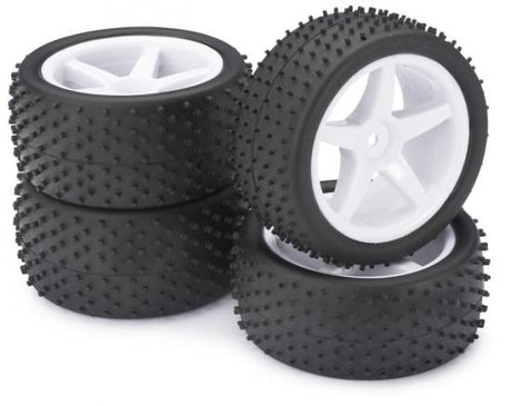Absima 1:10 Buggy Wheel and Tyre Set - Dirt Tyres - White 5 Spoke Wheels - Set of 4