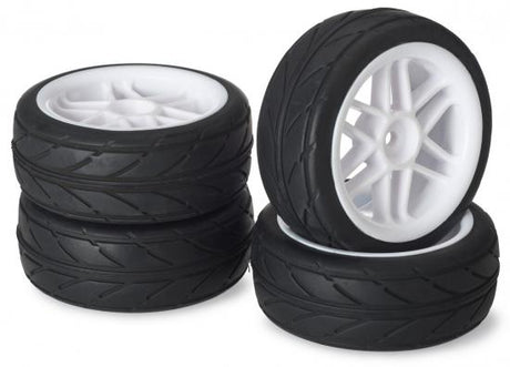 Absima 1:10 On Road Wheel Set - Slick Tyres - 6 Spoke White Wheels (4 set)