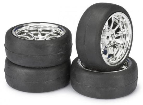 Absima 1:10 On Road Wheel Set - Slick Tyres - LP 9 Spoke Chrome Wheels (4 set)