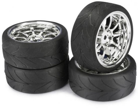 Absima 1:10 On Road Wheel Set - Profile Tyres - LP 9 Spoke Chrome Wheels (4 Set)