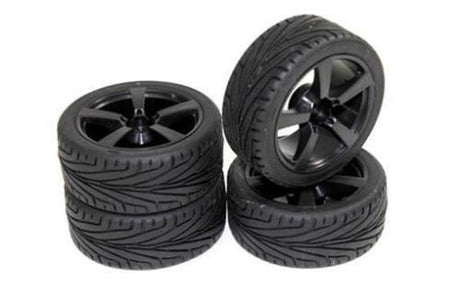 Absima 1:10 On Road Wheel Set - Slick Tyres - 15 Spoke Black Wheels (4 Set)