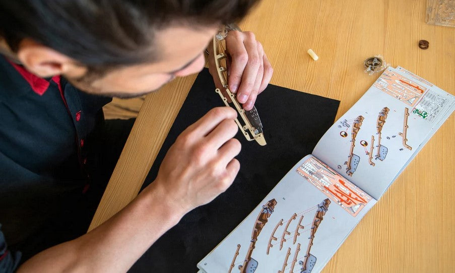 The model kit includes 575 parts made of wood and plastic, and requires no glue for assembly. Assembly instructions are included, and the difficulty level is advanced with an estimated assembly time of 10-12 hours. Suitable for ages 14 and up, this model has a scale of 1:32 and is a thoughtful gift idea for friends, loved ones or colleagues.