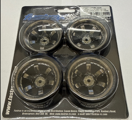 FASTRAX 1/10 (4) DRIFT D3 TYREw/9MM 6-SPOKE WHEEL- BK CHROME