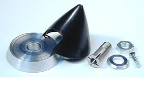 Precision spinners for two-bladed folding prop set up.consisting of:Alu-base plate (CNC-machined) Collet type prop driverImpact-resistant plastic cap Reqs. Prop blades and aluminium prop bar