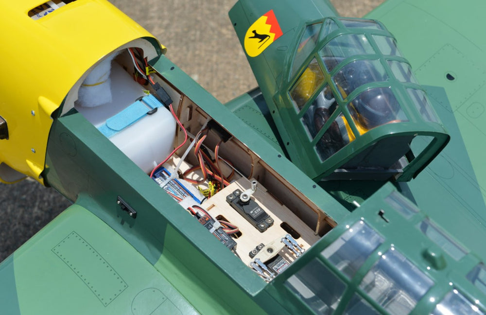 Inside those huge scale spats is a tough, steel, sprung undercarriage, ideal for soaking up bumps on the typical model flying field. Up in the cockpit there is a detailed instument panel and an authentic looking, hand-painted pilot.