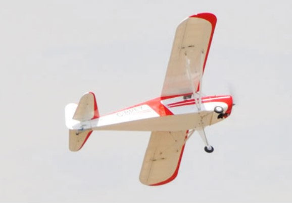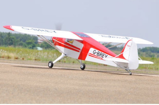Designed to compete with the already popular Cub the Taylorcraft has remained largely unchanged since 1936. Factory built to Black Horse’s high standards and factory covered in Oracover. Many scale details, such as the opening cabin doors, functioning tail and wing struts add to the character of this remarkable model. The large cowl almost completely encloses a typical petrol engine silencer.