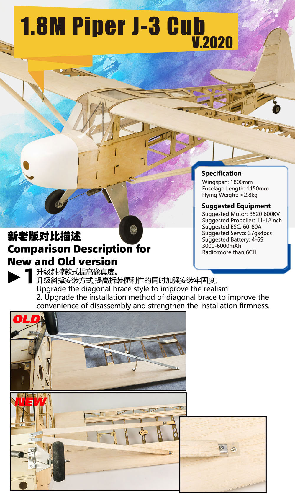 DW Models J3 Cub Balsa Kit 1.8M (inc Motor- ESC- PROP)