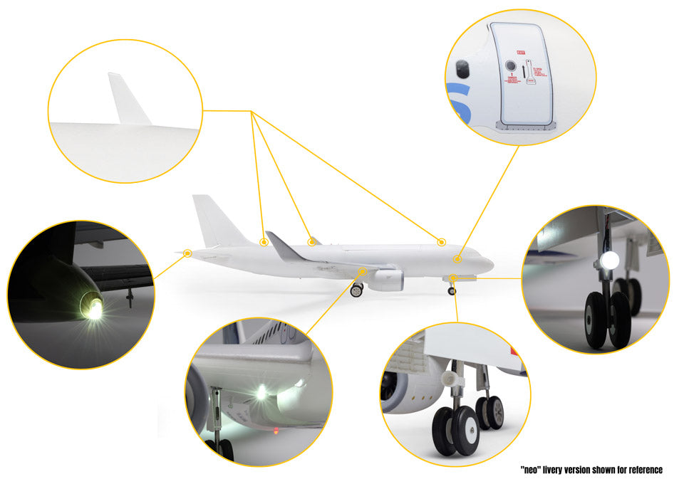 E-flite Airbus A320neo Twin 64mm EDF RC Jet Airliner Features