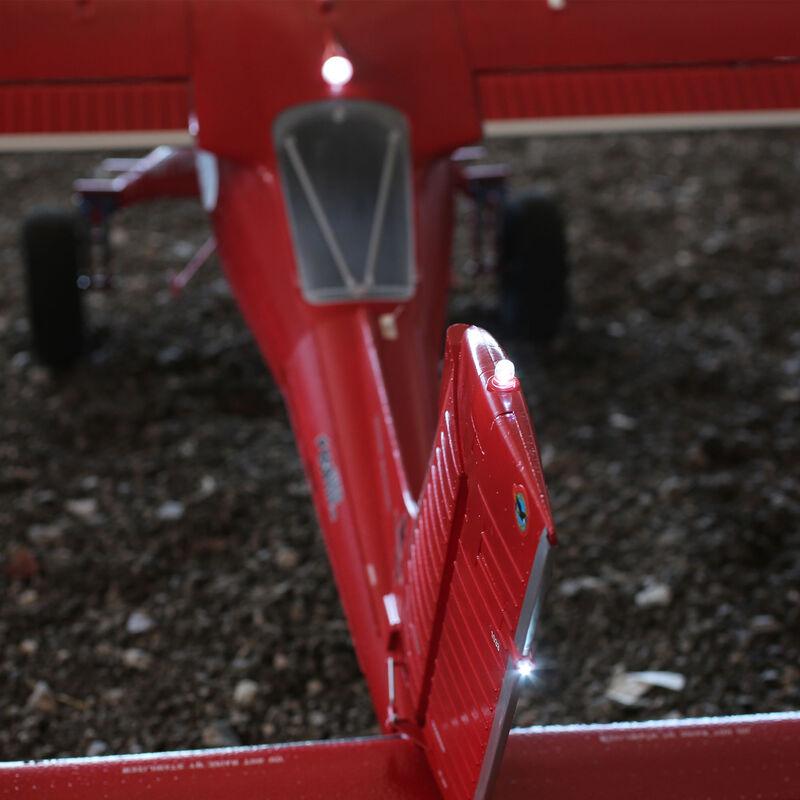 Inspired by the incredible ingenuity and effort Mike Patey put into building the full-sized aircraft, E-flite® offers the only officially-licensed scale replica of the ultimate bush plane! The amazing DRACO 2.0m is one of the most highly-engineered, detailed and feature-rich RC models ever produced. Beyond its complex design and the accurate shape of its fully-molded, lightweight and durable EPO airframe with a factory-applied finish, it also features an abundance of Extra Scale details including a variety of surface features, steps, antennas, wingtip "stinger" skids, and much more. The clear windshield and windows offer an excellent view of the detailed cockpit with pilot figure and backlit instrument panel. Functional Extra Scale features include licensed, scale-like KING shocks on the main gear and tail wheel, leading-edge slats, slotted flaps and more. There are also a total of 17 LEDs throughout the airframe — with a custom controller that allows you to select solid, strobing and other light combination options from your transmitter. Oversized, tundra-style tires on the custom-made carbon fiber main gear soak up bumps and provide excellent prop clearance, while the shock-absorbing and steerable tailwheel offers improved ground handling — even when taxiing backward with the optional-use motor reversing (compatible Smart receiver and 7+ channel transmitter required for reversing).