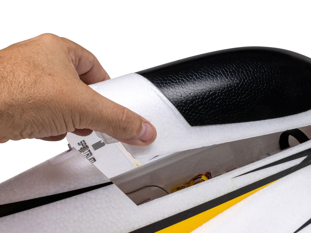 No glue is required for final assembly, and you can have the Sportix 1.1m ready to fly in less time than it takes to charge a battery! And although it's conveniently sized to fit fully assembled in just about any vehicle, you can also remove the two-piece wing for even easier storage and transport. Built-in wing locks and hands-free connections mean you can remove/install the wing in almost no time without the use of any tools or fasteners.