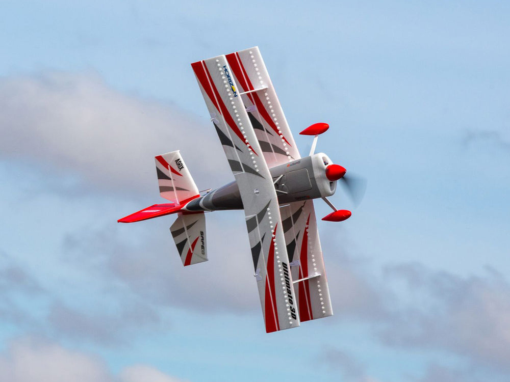 Equipped with the latest modern-day innovations and upgrades, the E-flite® Ultimate 3D biplane raises the bar for scale, sport and precision aerobatic flying - plus all-out 3D performance too! Stronger, faster metal-geared servos and ball-link equipped linkages deliver positive, precise control while the beveled hinge lines make it possible for the control surfaces to deflect to high angles for extreme 3D capabilities. The new power system, with a specially-tuned motor and prop, is compatible with 3S AND with 4S batteries to deliver extra power and unlimited vertical capability - no modifications required. It also features exclusive Smart Technology via the Spektrum™ Avian™ 60-amp Smart ESC, and the BNF® Basic version is equipped with an AR637TA receiver that offers full-range telemetry including real-time battery voltage, current, temperature and more to compatible transmitters. Plus, with 7+ channel transmitters, the optional-use motor reversing function adds special ground handling and other unique capabilities. The composite-reinforced, hollow-core EPO construction provides a lightweight but durable airframe that's factory-finished in a striking, ready-to-admire trim scheme. Best of all you can have the Ultimate 3D flight-ready in less time than it takes to charge a battery because no glue is required for final assembly, and installation/removal of the wings is tool-free for easy storage and transport. This makes it the easiest and best choice for almost any pilot looking for their first or next biplane!