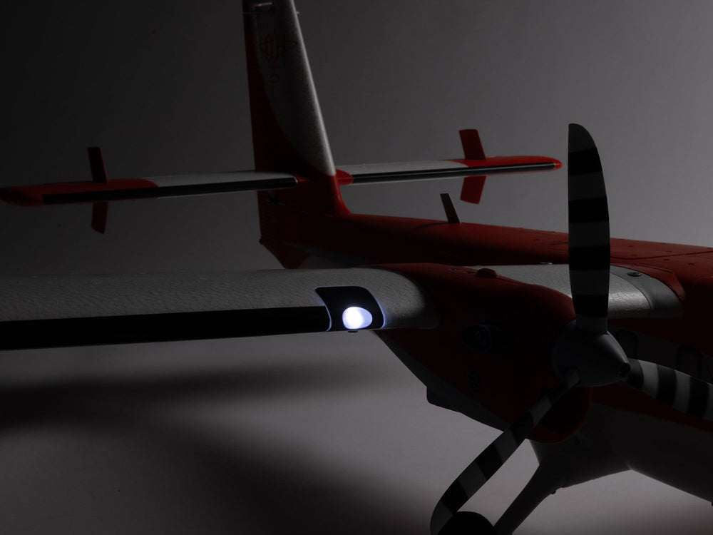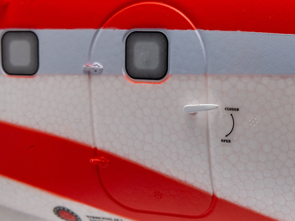 The Twin Otter 1.4m features an abundance of scale detail including moulded-in panel lines, corrugated control surfaces, windshield wipers, handles, antennas, and more. It also features operational flaps to deliver improved slow flight handling and shorter takeoffs and landings. Plus, factory-installed LED lighting, including navigation and landing lights, add to the scale realism and authenticity.