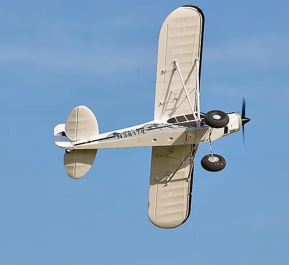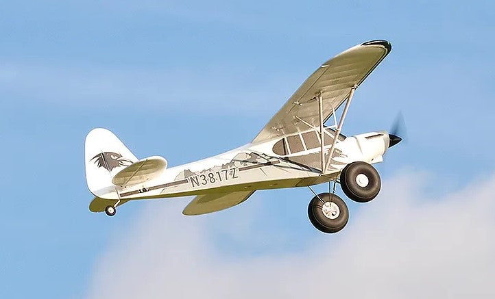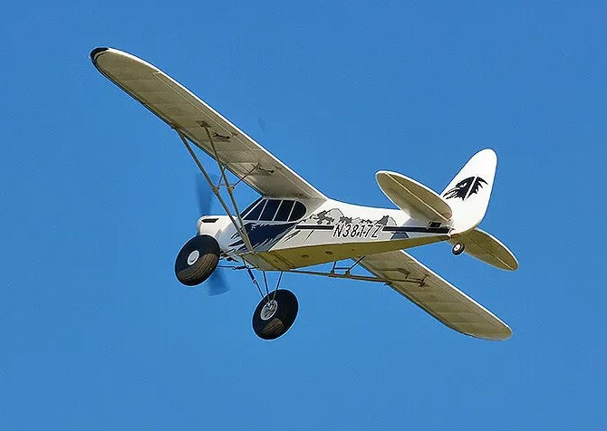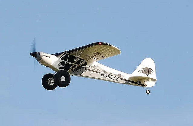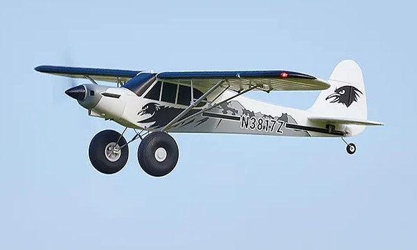 Thanks to its functional flaps, high-lift airfoil, rugged landing gear and oversized pneumatic rubber tires- the 1300mm PA-18 Super Cub has impressive short take-off and landing (STOL) performance, allowing it to operate from just about any terrain.