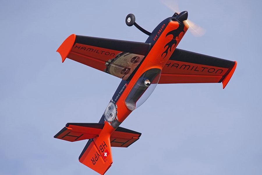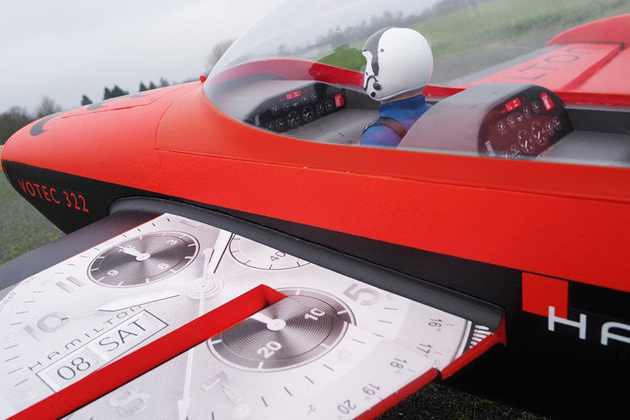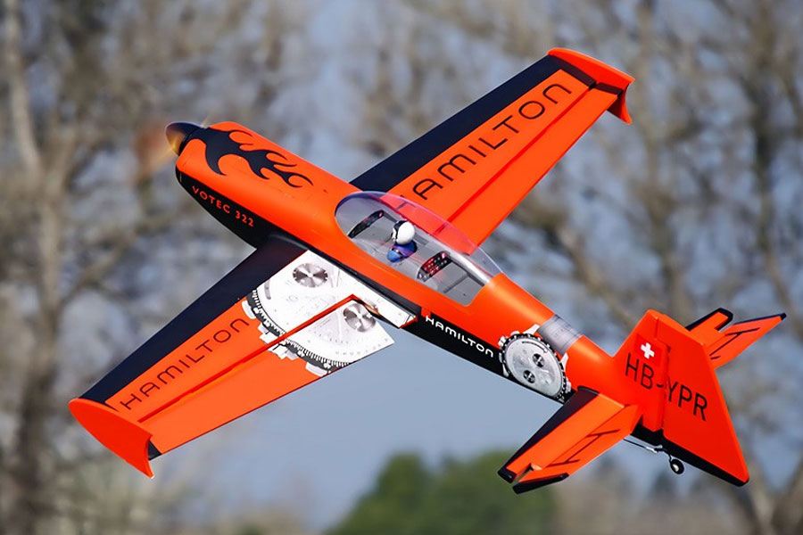 The aircraft adopts a streamlined fuselage design and scaled Hamilton colour scheme. Built with a hollow a wing design, carbon fiber tubes, preinstalled precision ball links and rods the Votec 322 delivers an enhanced 3D performance.