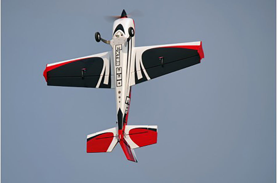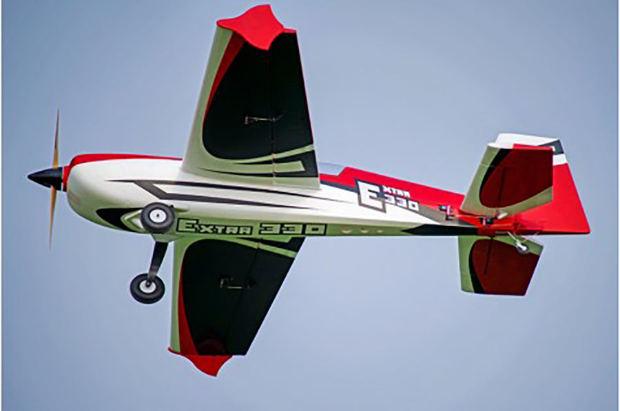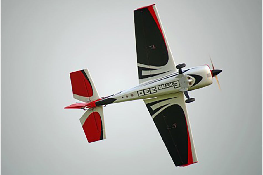 Building on the advanced construction and design of its predecessors, the Extra 330 integrates a strong yet lightweight hollow wing structure, carbon fiber wing spars, carbon fiber landing gear and highly efficient large wooden propellers- which effectively reduce vibrations while being highly efficient. Featuring a monstrous 6860 motor, Predator 90A High-voltage ESC and Predator high-voltage 75g servos, the Extra 330 will perform any maneuver the pilot thinks of. High speed passes, inverted fight, loops and point rolls are a piece of cake when its powered by the recommended 12S battery.