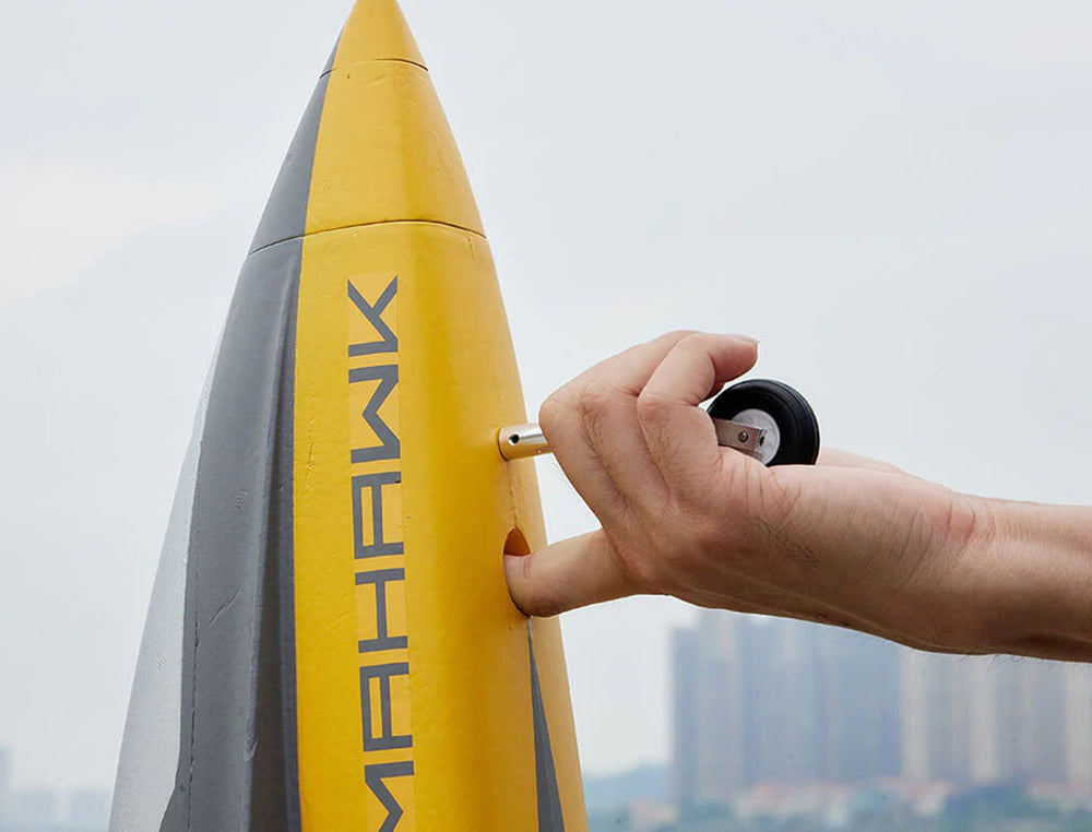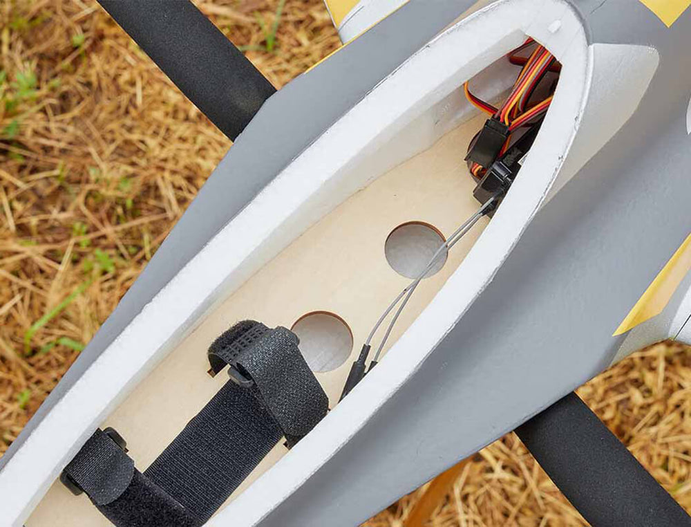 The power system is composed of a high-torque 2840-KV3150 brushless motor, a high-stability 40A ESC, and a 4S 2200mAh-2600mAh battery (to be purchased separately), which is paired with 8pcs high-precision 9g servos mounted on the wings, tail, and front steering position, allowing players to easily experience various control techniques and enjoy the pleasure of high-speed flight. In addition, the wings and tail of Futura have been pre-embedded with reinforced ribbons, and the cockpit is firmly fixed in place with buckle, which allows players to perform aggressive turns, rolls, and flips without any concerns. The CNC all-metal landing gear with trailing-link suspension is highly precise and robust, protecting the plane against rough landings.