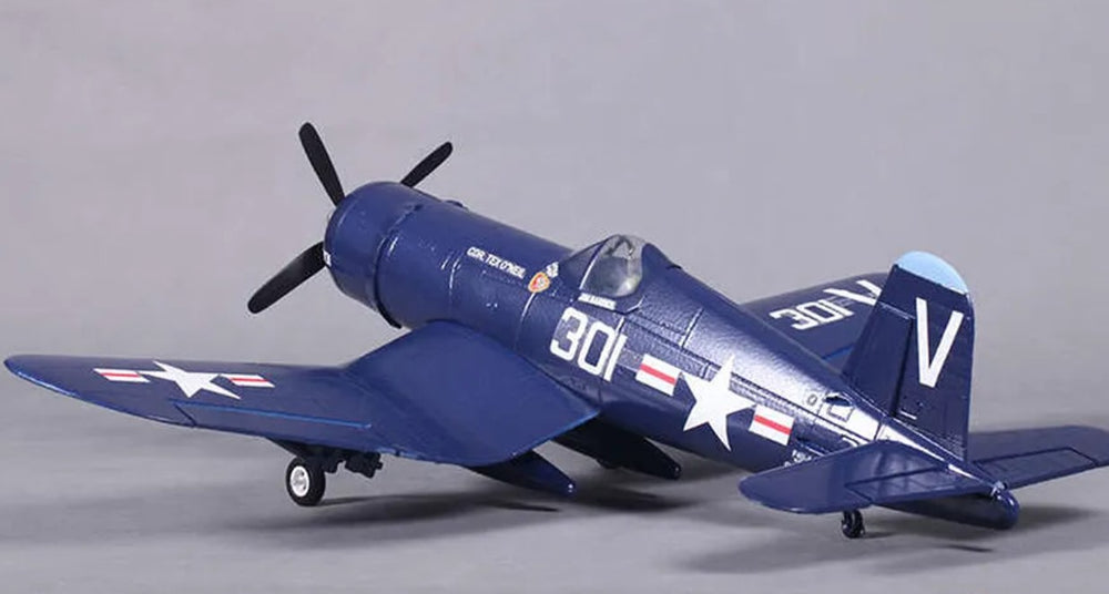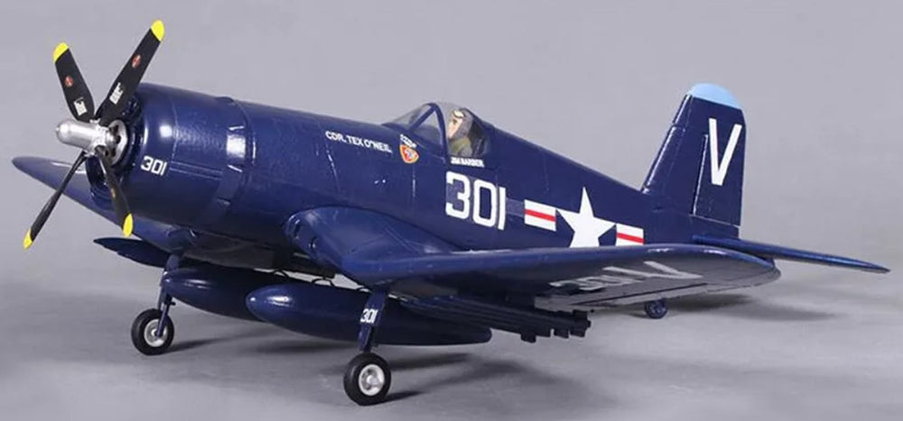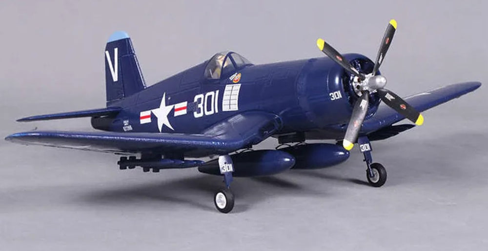 The FMS model of the F4U Corsair has many scale features including a beautiful 3 blade propeller and scale hub. The aircraft features a brushless motor, 20Amp ESC and 4 ready installed servos. Assembly, following the simple photo step by step assembly guide takes minutes. The EPO foam construction provides a light weight yet resilient airframe that will make your adrenaline fuelled dog fights genuine fun. So what are you waiting for order today.
