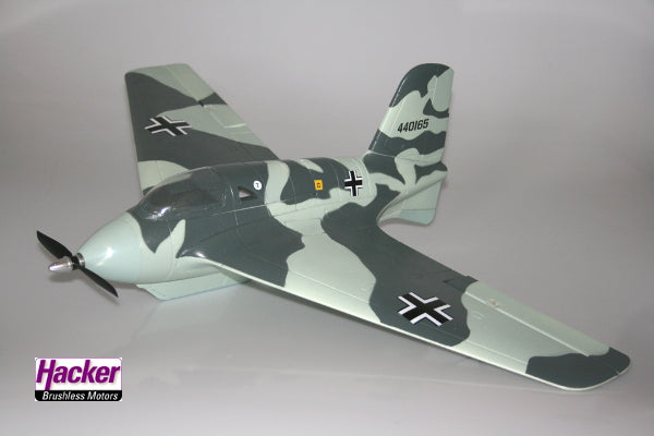 The Hacker Me-163 is a semi-scale model based on the famous Me-163 „Komet“. This model is made of durable EPO foam and impresseswith extremely forgiving flight characteristics and blazing