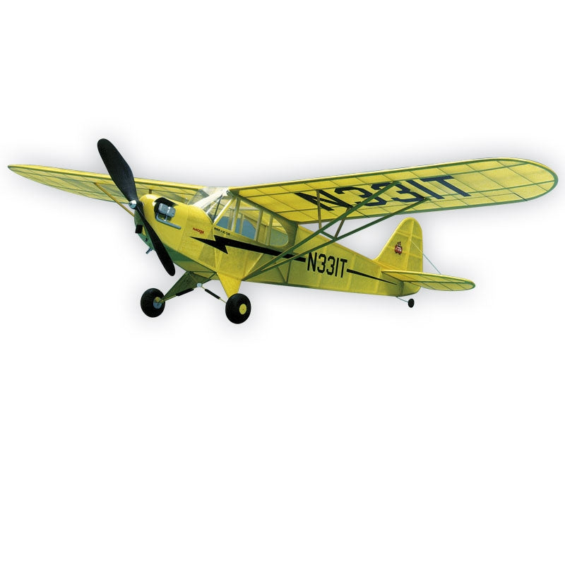 The Piper J-3C Cub Hacker Model is a traditional balsa / CTP aircraft, originally designed for rubber engines. But the arrival of brushless motors, LiPo and ultra-light servos is changing the game! You can easily transform this kit into an RC airplane. This model is intended for experienced or do-it-yourself models as it is entirely to be constructed and covered with Japanese paper.