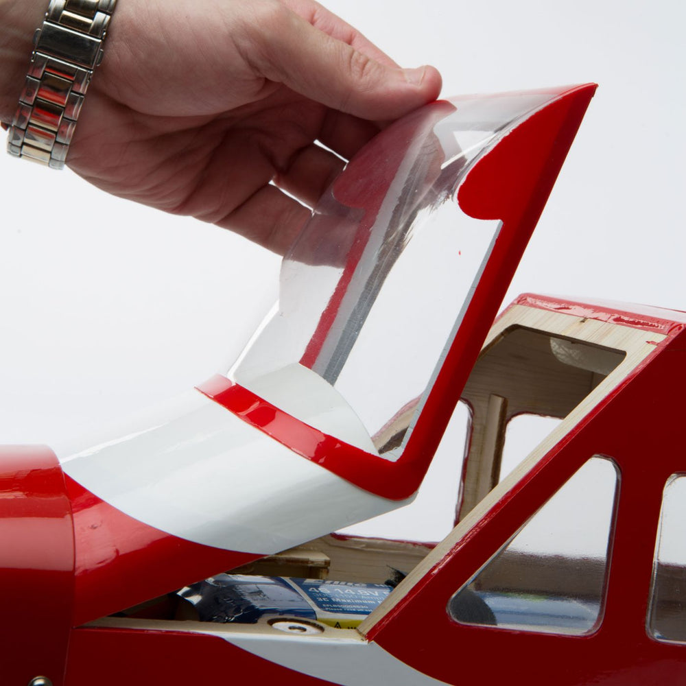 The Valiant design has proven versatility and virtuous flying manners. A semi-symmetrical airfoil provides outstanding stability and good wind penetration so you can be comfortable flying even when the air currents are less than ideal. Operational flaps can make takeoff and landing super-short, while a touch of flap makes cruising around at slow speeds more than a pleasure. Flaps up, the Valiant airplane is a sport aerobatics dream machine with dramatic loop capability from any attitude, crisp roll performance and enough rudder authority to do impressive knife edge passes-especially for a high-wing cabin model. Like its big brother, the Valiant 10cc presents with an overall rock-solid feel in the air, like a giant-scale model. As the namesake implies, the Valiant 10cc is sure to become a hero around your club field as the model to have, no matter what flying occasion may rise.