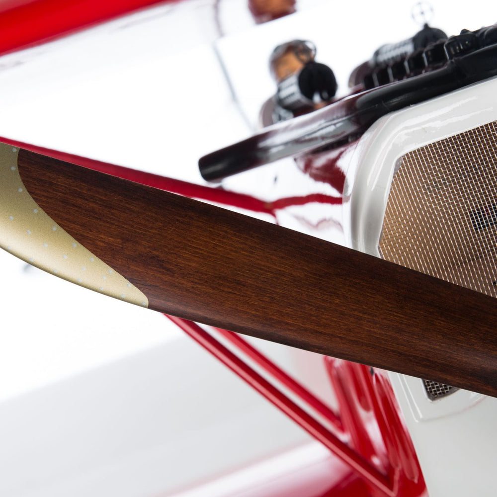 Hangar 9 brings this Great War legend to life as a remarkable giant-scale ARF with scale details to truly do the legendary Fokker D.VII justice. The model has been expertly built to exacting standards utilizing lightweight balsa and plywood. The result is an ARF model that goes together easily with outstanding appearance and friendly flying manners. Even the most discerning modeler will appreciate the exceptional level of details like molded machine guns, scale pilot figure, cockpit details and 8" scale tires, just to name a few. Shock-absorbing main landing gear takes most of the bounce out of grass strips. Genuine UltraCote covering provides an exterior finish that replicates scale-inspired colours with distinction. The Fokker D.VII is designed to accommodate a variety of 30cc to 60cc 2- or 4-stroke gas engines, or brushless electric outrunner motor. All hardware for the recommended power system options is included so assembly is easy and you can get in the air faster. A large top-hatch makes any maintenance and battery changes simple, while providing easy access to electronic components.
