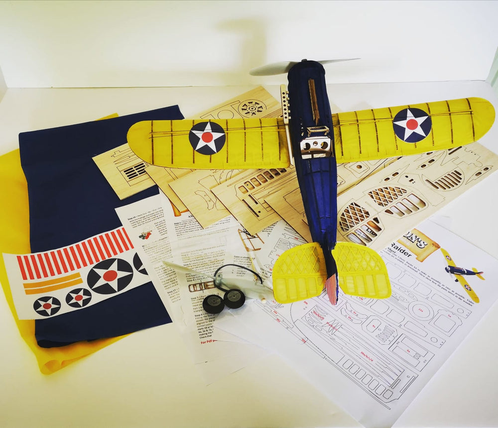 This balsa wood and tissue kit is a fantastic starter or intermediate kit to introduce to our range and aircraft. This rubber powered display model looks great as a skeleton or finished covered piece.
