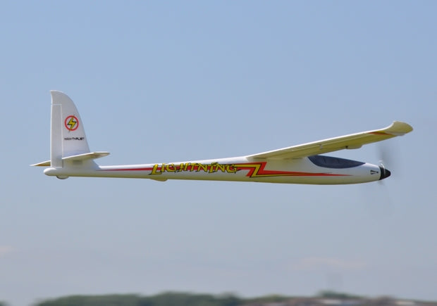 Although we call the Lightning a glider really it is far more and should appeal to anyone like us who loves to fly. Its sleek elegant lines enable this model to perform precision aerobatics like an F3A model but also soar in the warm air thermals or a 30 mph wind on the slope and reward you with a big smile every time you fly.