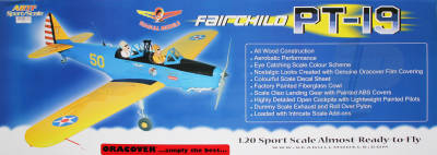 Forever, well as long as I can remember, the PT-19 has been a popular choice for classic model pilots because of their looks, flying characteristics and a bit of nostalgia thrown in. This PT-19 boasts a large 202cm wingspan so it's not a small model by any means and this large scale helps make this PT-19 a formidable model.Inside the box