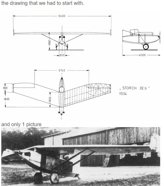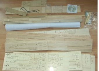 There is no wood in the storch kit as sheet and stringers only cnccut parts and a drawing instruction (Require downloading)