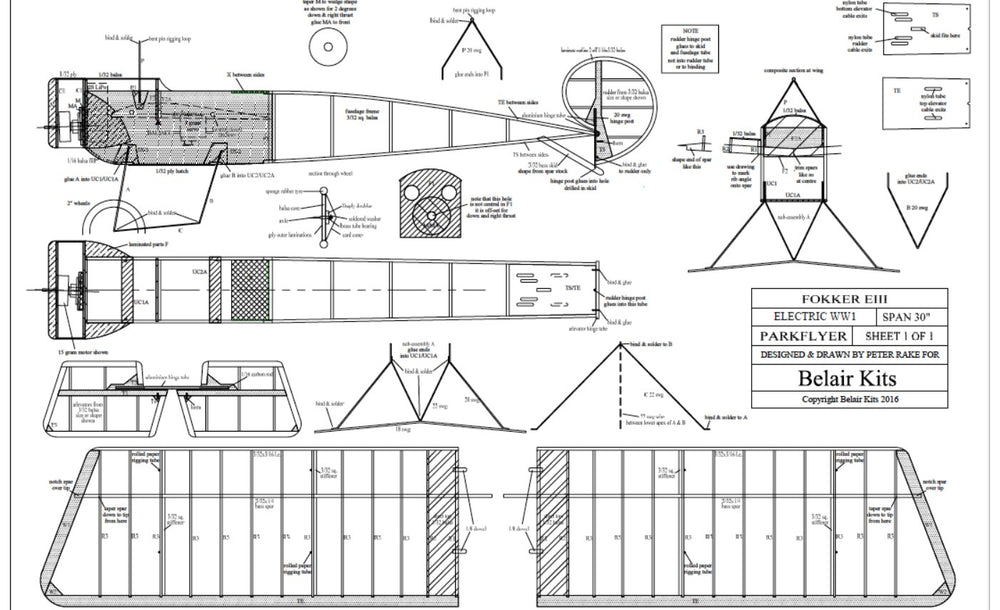 Slec/Belair Fokker E-111 Eindekker - electric scale 30 inch kit by Peter Rake