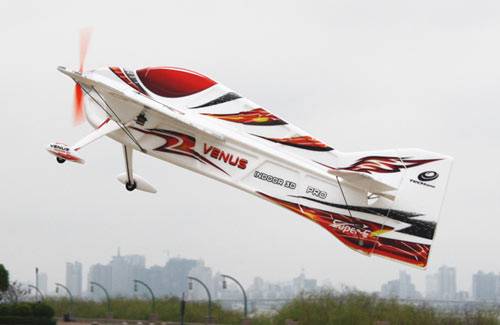 On the performance front, the Venus 3D delivers that in spades! The ultra slow speed performance is predictable and dramatic, thanks to the large aileron, elevator and rudder surface areas. The deep fuselage provides great lift for extended knife edge flight.