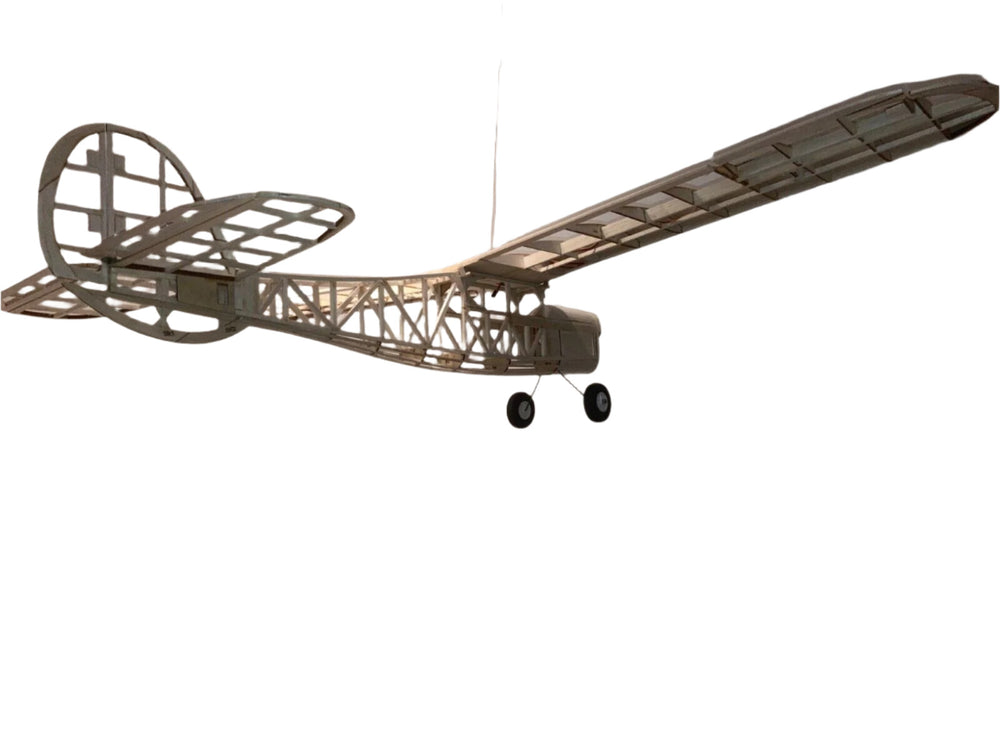 Vintage style model plane kit. 1.5 metre wing span, built up balsa and ply construction, high wing cabin model intended for brushless electric motor power.. Kit contains all laser cut ply and balsa parts, sheet and strip balsa and a comprehensive fittings kit to include push rods, connectors, hinges under carriage and wheels. There is also a full size plan and a CD ROM with a 74 page construction manual with 100 photographs.