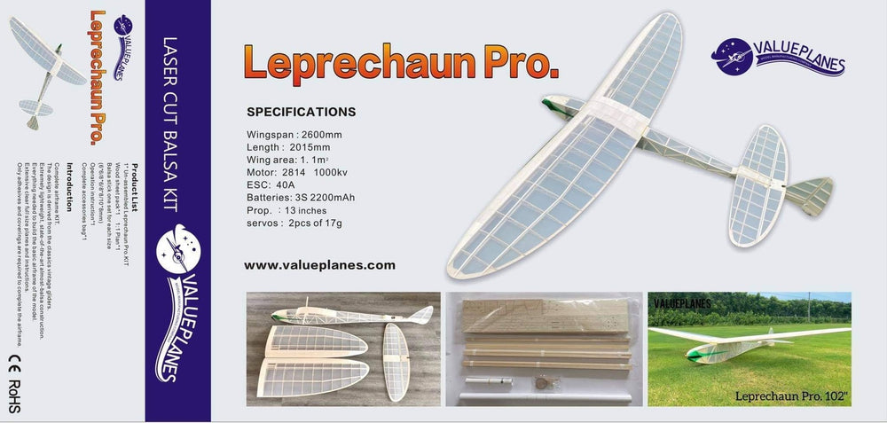 Valueplanes Balsa Leprechaun Pro 102 inch 2.6M Balsa Kit