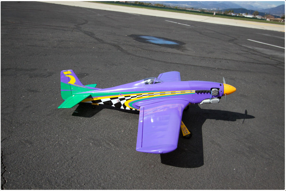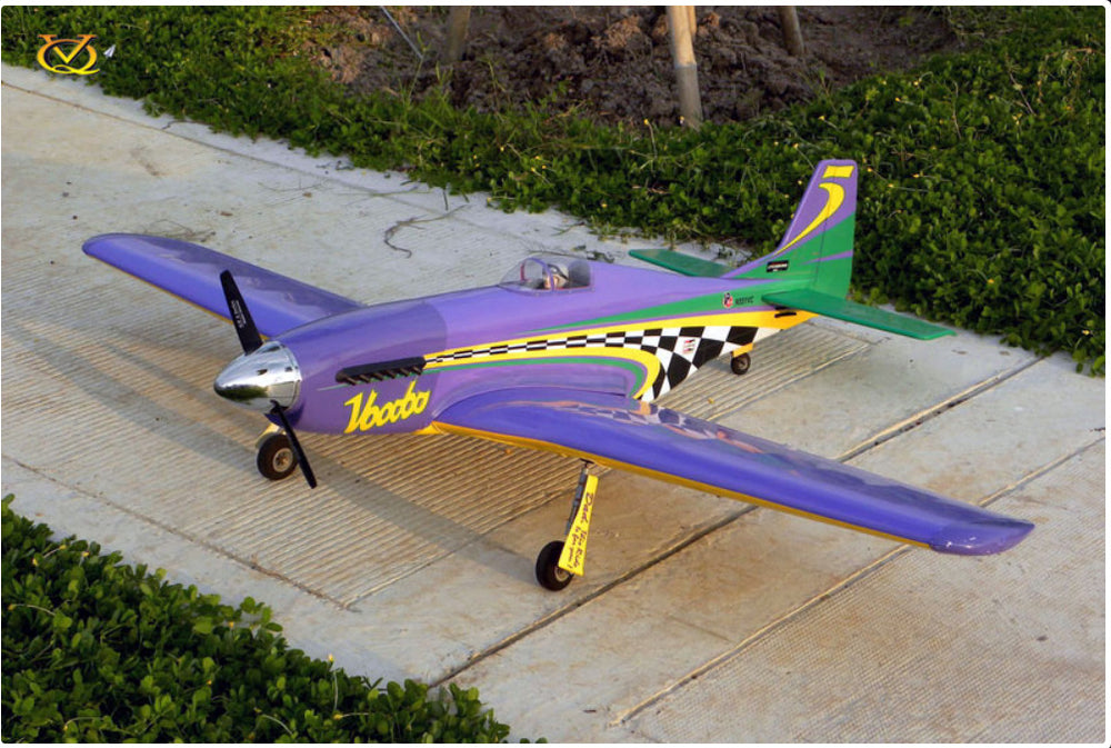 The P-51D Mustang is one of the most famous US fighters of WW II. However, this P-51 is not your grandfather's warplane. The VooDoo is a Reno Racing Winning Pylon Racer. Highly modified to go fast, the VooDoo is recognised the world over in today's pylon racing circuit. Winning at Reno is a little like black magic. Fast, determined, and looking for every advantage the VooDoo is a fast aircraft. This model is inspired by that magic in every Reno racer. The VQ VooDoo is a model that you'll have fun flying fast. Unlike its full-size counterpart, the VQ ARF's VooDoo is easy to fly for a scale warbird and perfect for intermediate to advanced RC pilots. And its easy to finish too because it's an ARF and builds easily and quickly just like a wood ARF should.