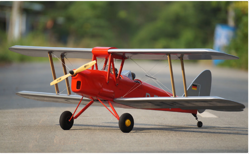 Now, VQ Models introduce the DH-82 Tiger Moth 46 size EP-GP. This DH-82 Tiger Moth comes with 4 piece wing with 2 aluminium wing joiner for easy transport. With the big battery hatch, you can use both Electric motor or Nitro engine.