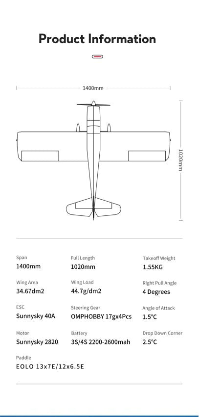 OMPHOBBY S720 RC Plane Ready To Fly with 6-Axis Gyro Stabilizer
