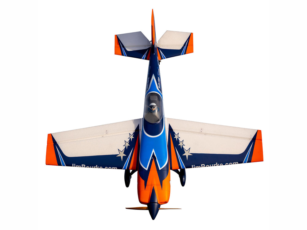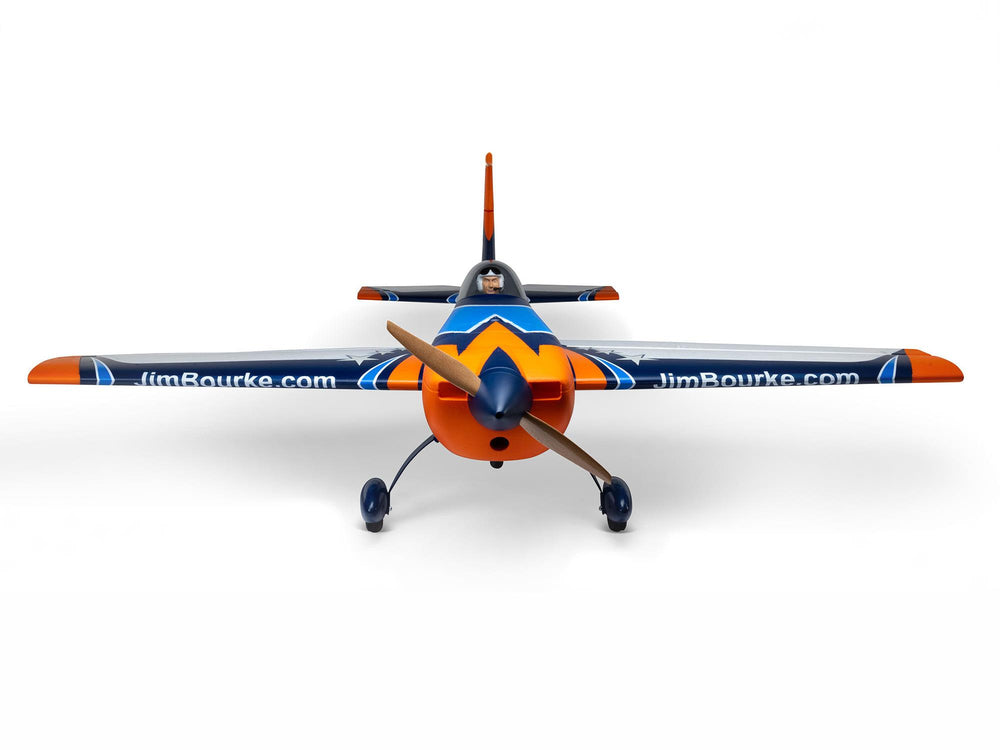 Factory-finished in the unique and iconic trim scheme featured on the full-scale Extra 330SC that Jim Bourke – the creator of RCGroups.com and owner of Knife Edge Software that originally developed the RealFlight RC simulator – flies in airshows and competitions around the world.
