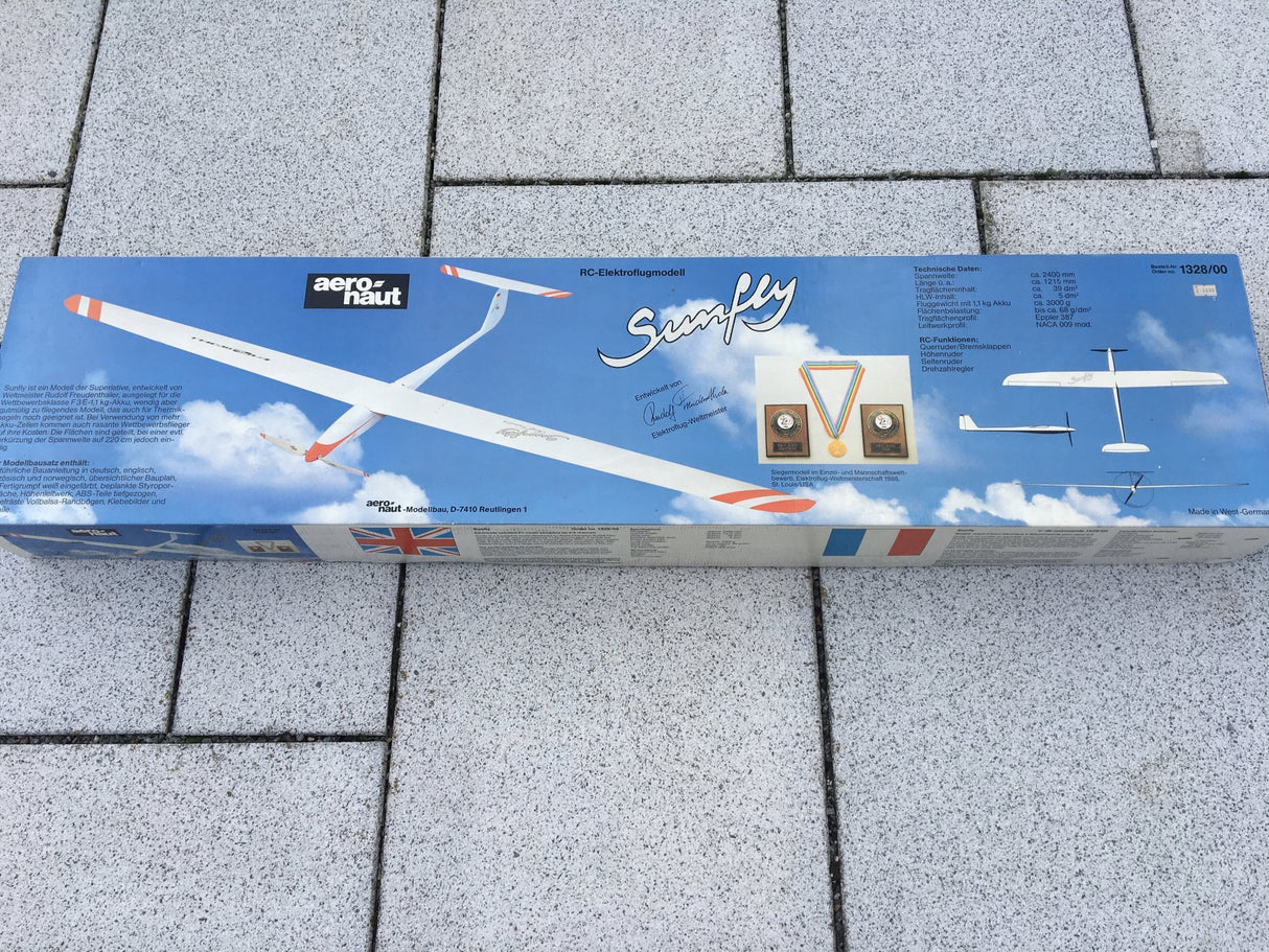 This 2.4M motor sailor has balsa sheeted wings and glass fuse.