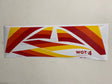 Graphic sheet contains red, orange and yellow decals for left and right of fin, left and right fuselage and left and right main wing