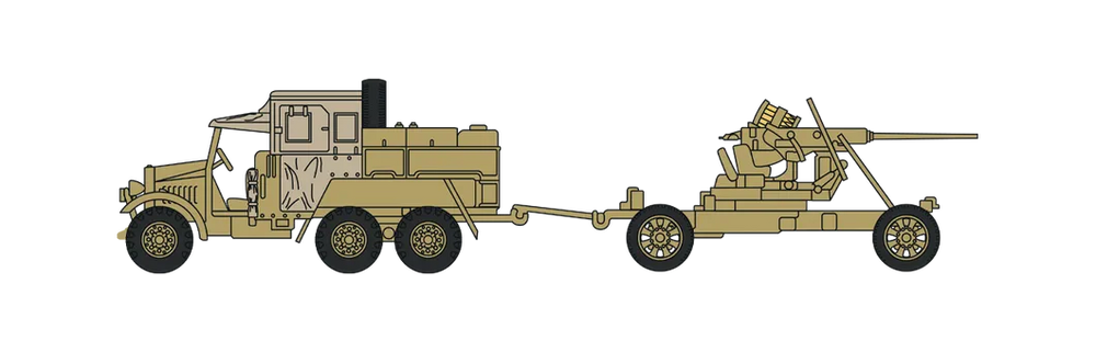 Designed in 1930 by the Swedish Bofors Company, this gun was adopted by some 18 countries and became the standard light anti aircraft weapon with the British forces. The Morris CS8 15-cwt 4x2 General Service Trucks were made in large numbers and they became the backbone of the British Army.