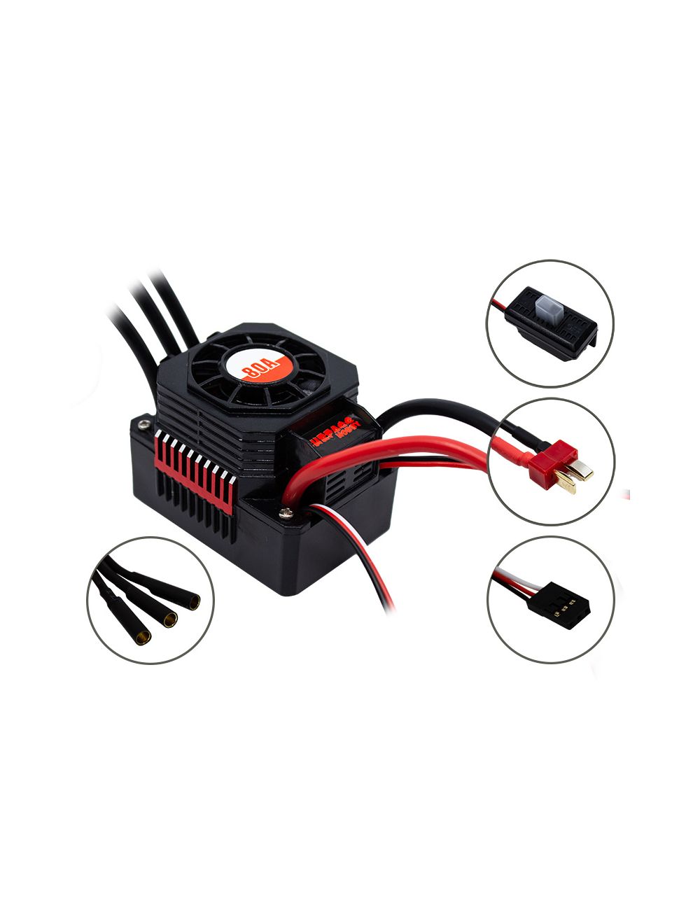 The 80A ESC stands as a premier electronic speed controller, meticulously crafted to meet the demanding needs of RC car racing. Its waterproof and dustproof features make it ideal for all-weather racing, assuring reliable operation across various environments. This ESC excels in providing smooth start-up, acceleration, and steady speed control, ensuring a responsive and fluid driving experience.