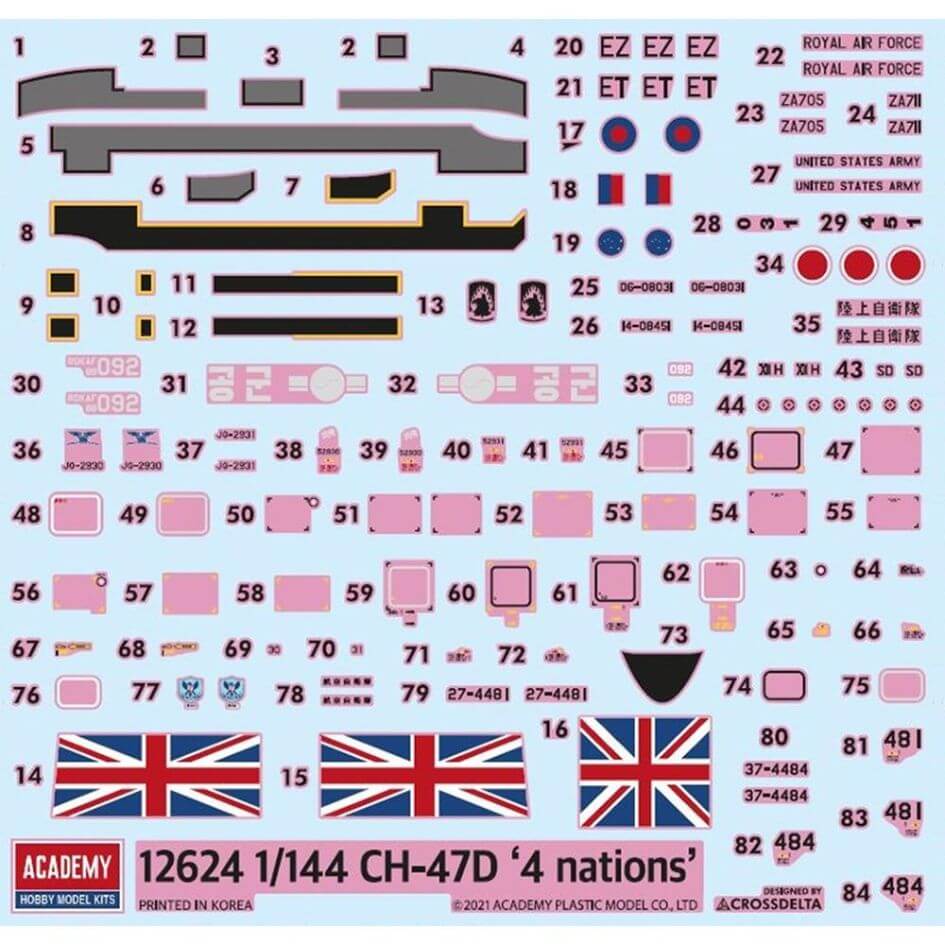 Academy 1/144 CH-47 D/F/J/HC. Mk.1 - 4 Nations Chinook Kit 12624