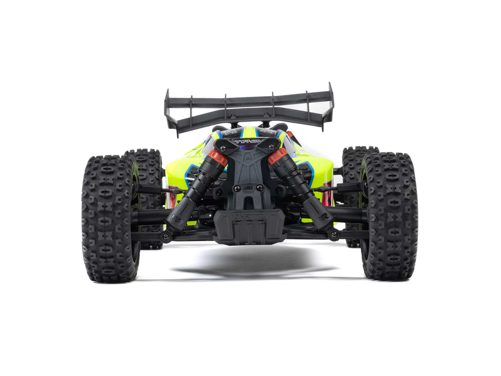 Go big and go brushless with the 1/8 scale ARRMA TYPHON 223S BLX race buggy! Ready for 2S or 3S power out of the box, it lets you increase top speeds from 35 to 50+ as your skills grow - without having to buy another vehicle or add expensive upgrades.Key Features
