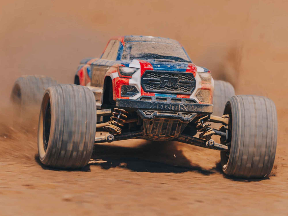 Unlike many manufacturers of mini RC models, ARRMA made no compromises when shrinking this basher down to small scale size. The GRANITE GROM 4X4 Monster Truck is precision-engineered to the same high standards as larger ARRMA RC vehicles. It also has a clipless body mount design that keeps the body securely attached but easy to remove for all drivers, young and old. Among small scale RC basher models it's in a league of its own, with convenience plus the power, strength, and handling capabilities you need to get serious about your stunts.