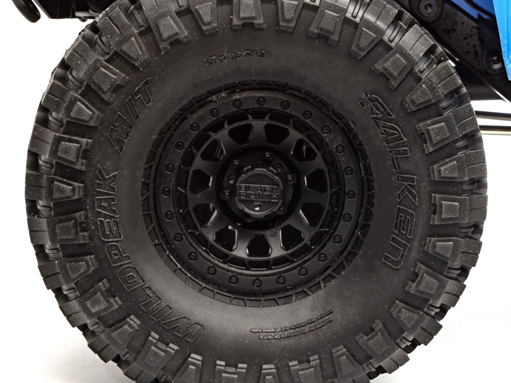 Officially licensed Black Rhino wheels add scale looks. The R35 compound Falken Wildpeak tires included with the SCX10™ III Base Camp™ 4WD provide good ground clearance and a secure grip on dirt, rocks, and all other off-road surfaces.