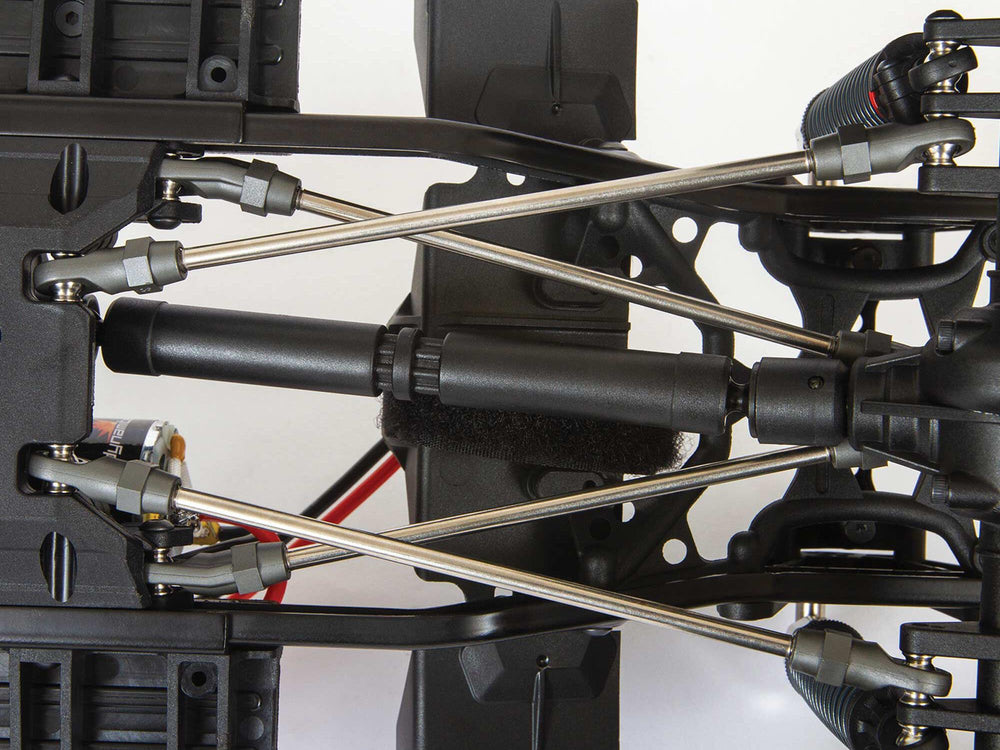 Stiff SCX10™ III steel C-channel chassis reduces frame flexing and increases suspension movement precision.