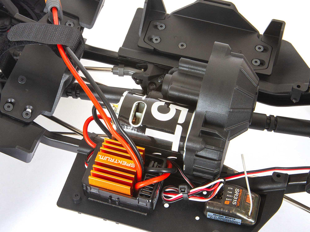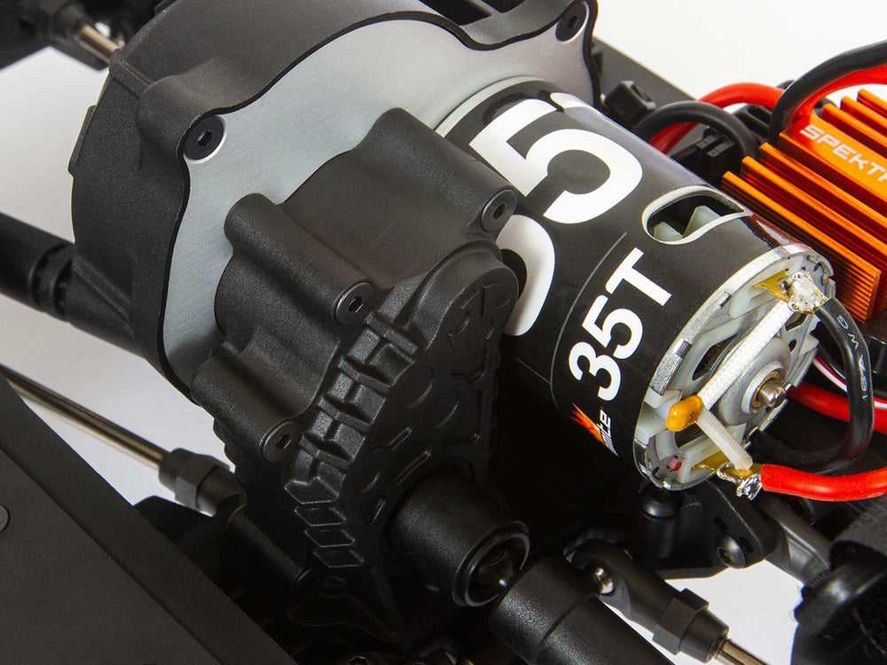 Included and installed power system features a Dynamite® 35T brushed motor and Spektrum™ 40A brushed ESC.